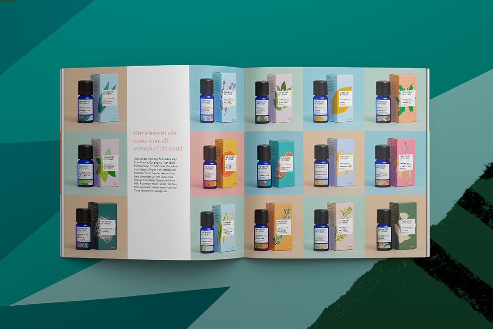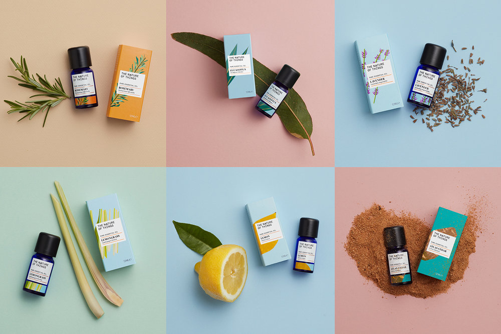 一套天然芳療精油包裝設(shè)計(jì)欣賞,瓶子采用藥劑瓶,給人以專(zhuān)業(yè)的感覺(jué),標(biāo)簽和外盒設(shè)計(jì)采用品類(lèi)植物插畫(huà)和文字排版設(shè)計(jì),給人一種天然簡(jiǎn)潔專(zhuān)業(yè)的感受,體現(xiàn)出品牌在芳療精油行業(yè)的專(zhuān)業(yè)性。