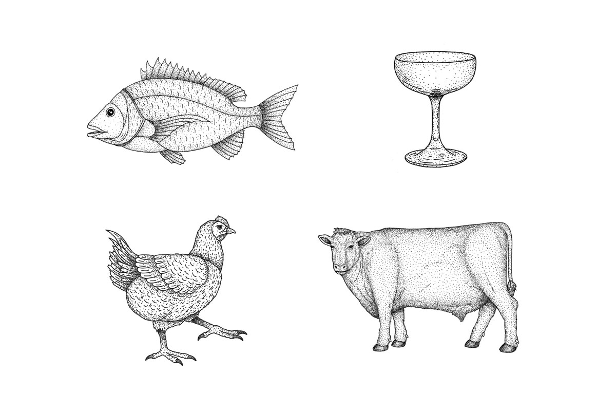 其中采用很多插畫(huà),其風(fēng)格讓人聯(lián)想到維多利亞時(shí)代的版畫(huà),但更具現(xiàn)代感。這些插圖中加入了幽默元素,這使餐廳能夠更多地談?wù)撈放莆幕囊幻?,而不?huì)感到太枯燥。